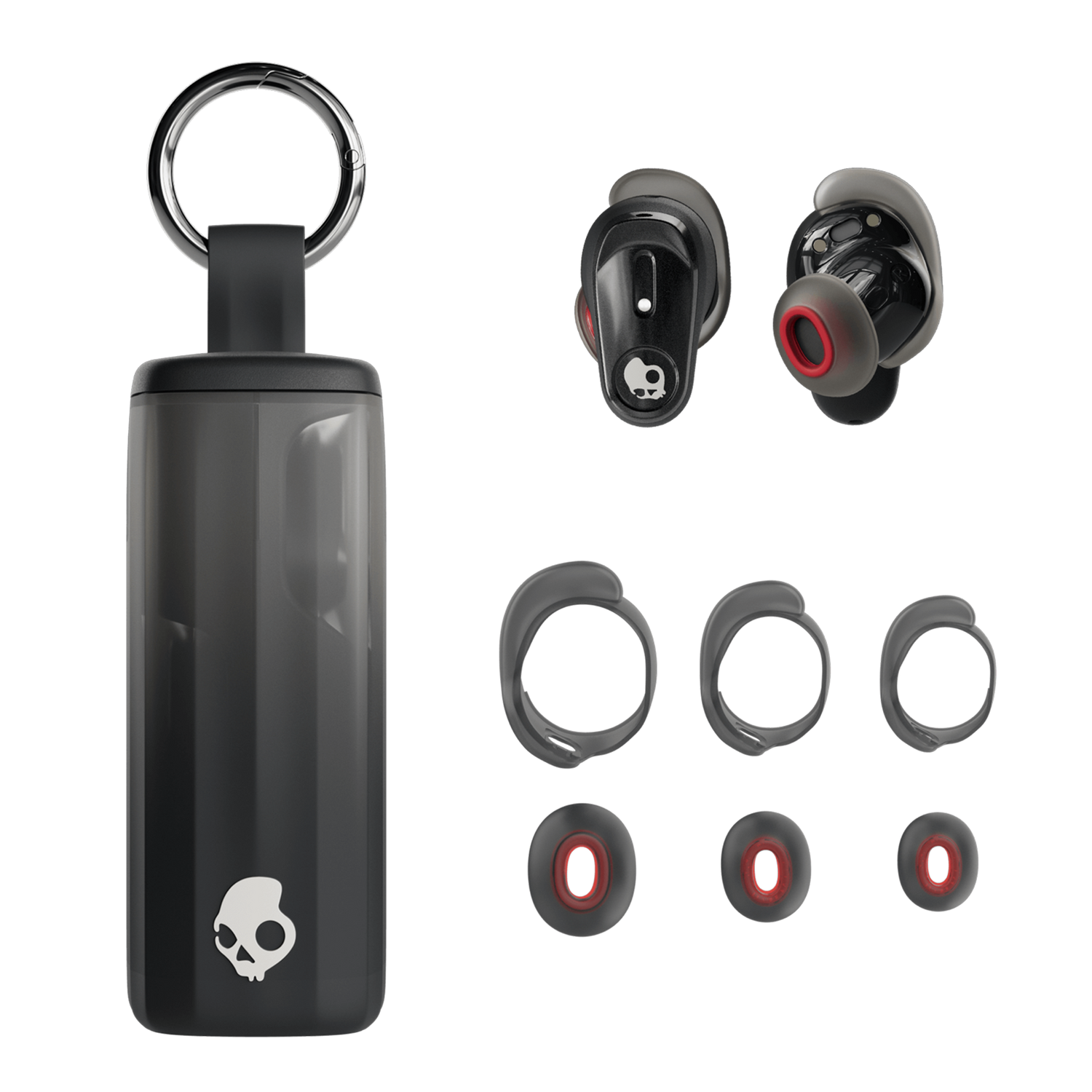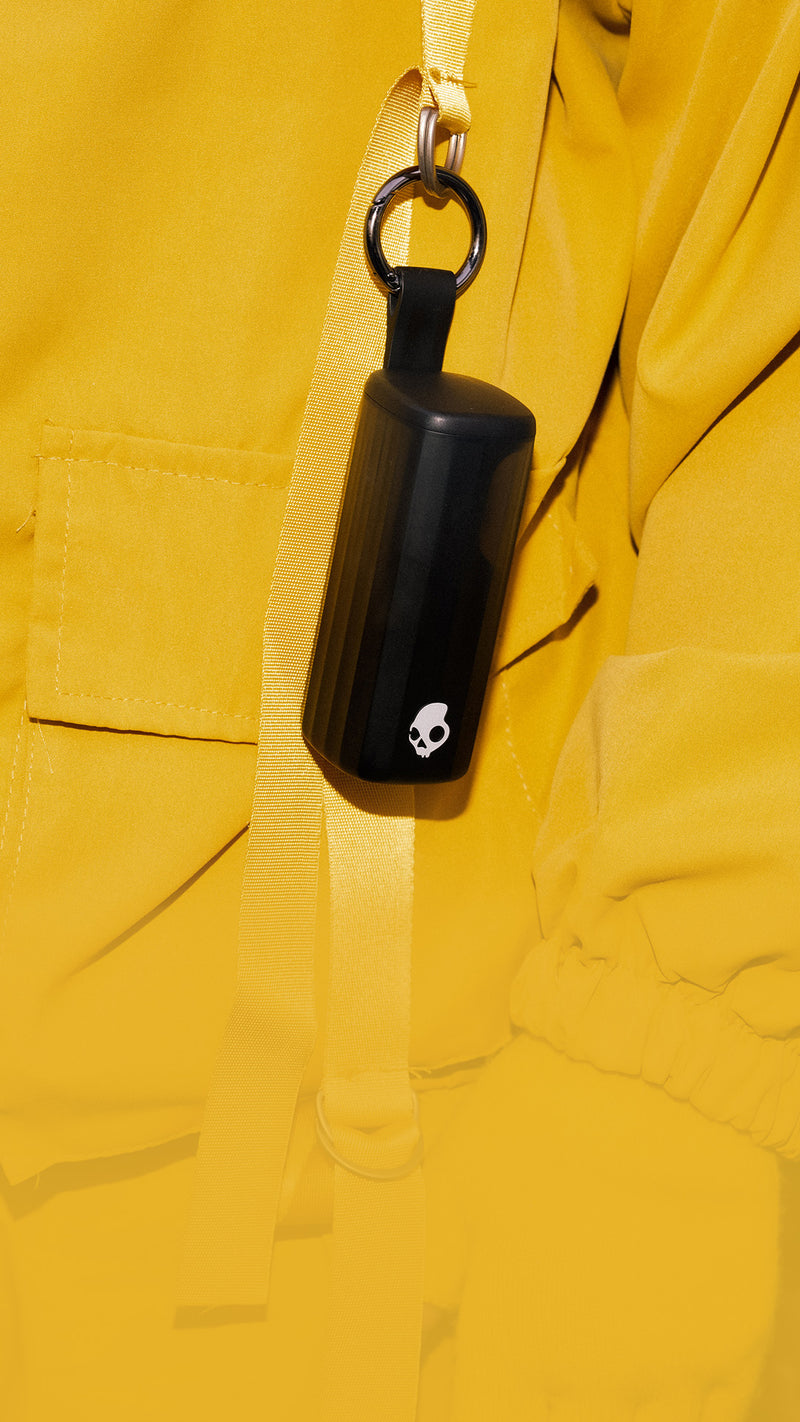 - Hold the case so the Skullcandy logo is facing away from you – as if it’s clipped to your belt loop